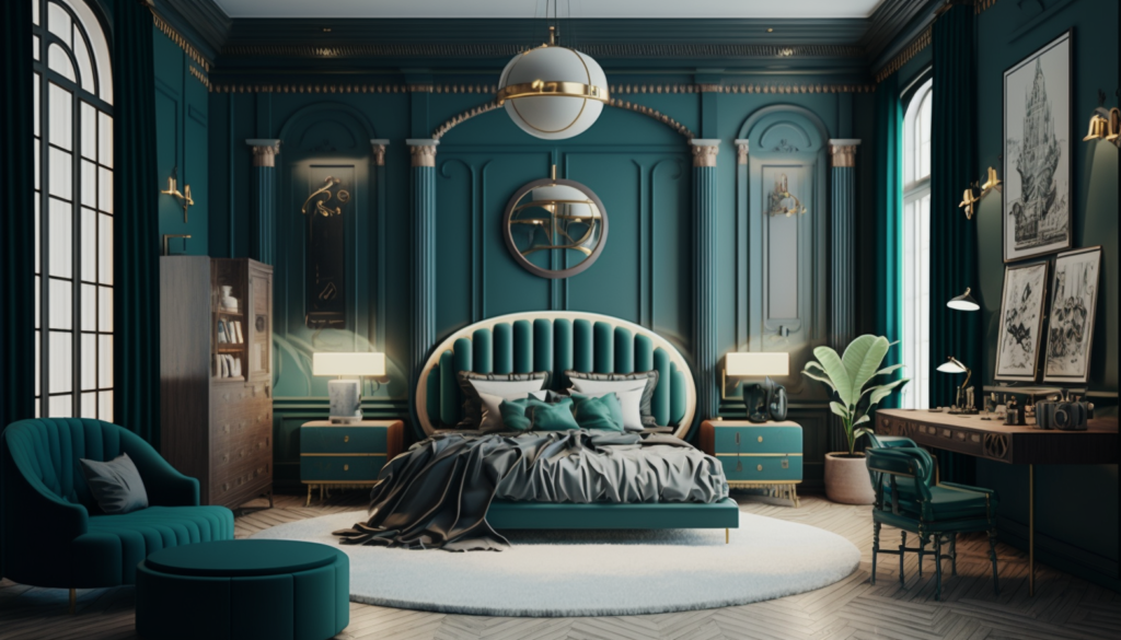 - Thiết kế: Phong cách nghệ thuật thường sử dụng các đường nét hình học, đường cong, các họa tiết trừu tượng và các chi tiết trang trí tinh tế để tạo ra một không gian nội thất lộng lẫy và đặc sắc.