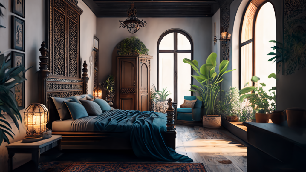 Phong cách nội thất Mediterranean thường sử dụng các họa tiết truyền thống như hoa văn Paisley, hoa văn hình bán nguyệt và hoa văn hoa. Các chi tiết trang trí phong phú như bộ sưu tập đồ vật cổ xưa, tấm thảm, và các vật dụng trang trí được sử dụng để tạo ra một không gian mang tính lịch sử.