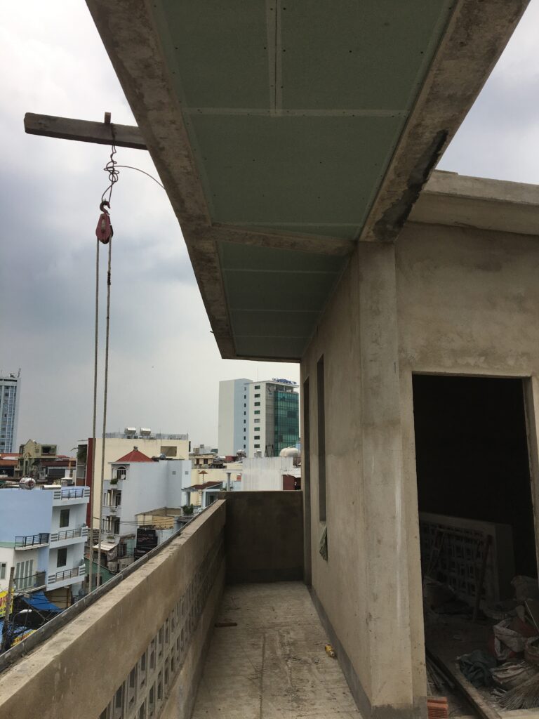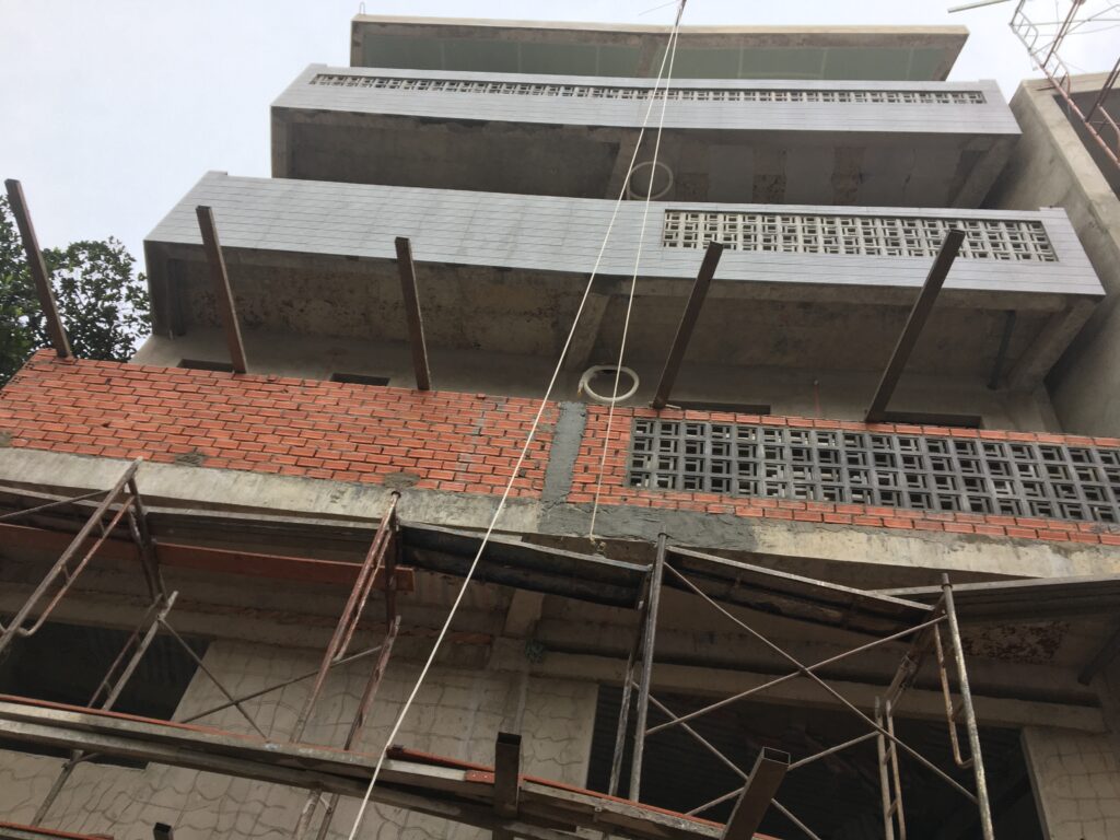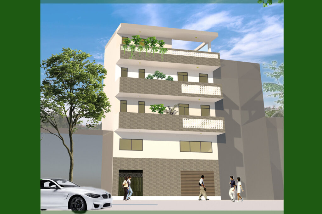 Quy mô xây dựng một trệt, 1 lửng, 2 lầu và sân thượng.